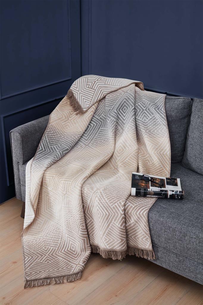 Tronc Çift Kişilik Pamuklu Battaniye Bej