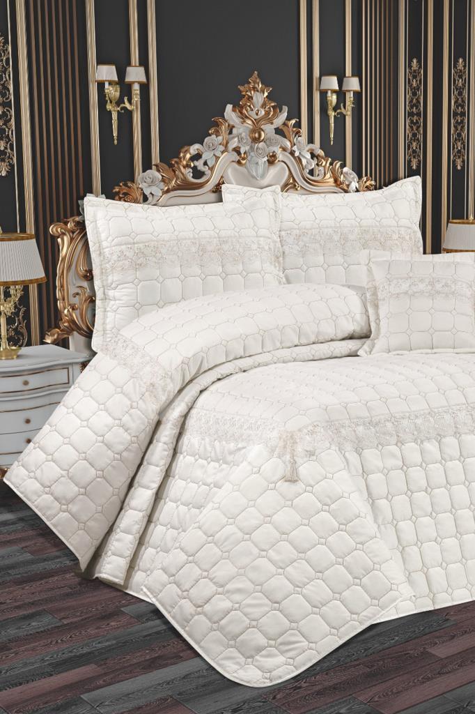 Tuba Çift Kişilik Kapitoneli Yatak Örtüsü Krem Krem
