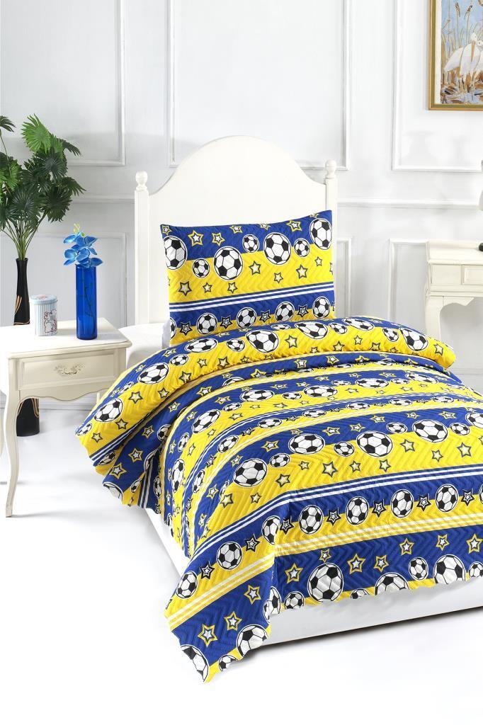 Ultrasonik Kapitoneli Şampiyon Tek Kişilik Yatak Örtüsü Sarı Lacivert