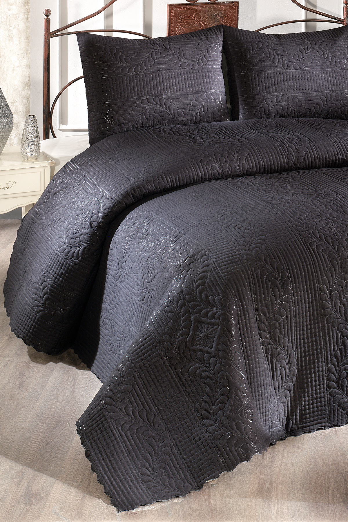 Ultrasonik Kapitoneli Sena Çift Kişilik Yatak Örtüsü Siyah