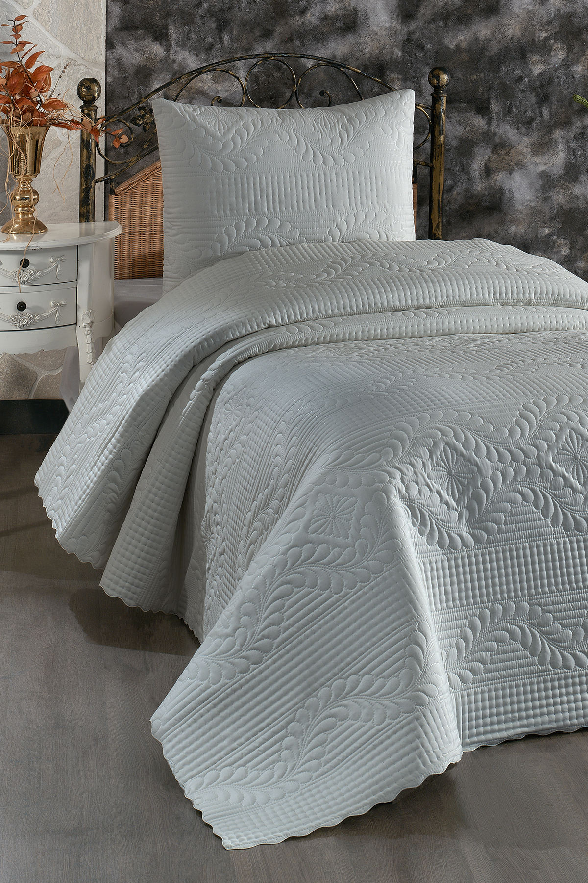 Ultrasonik Kapitoneli Sena Tek Kişilik Yatak Örtüsü Gri