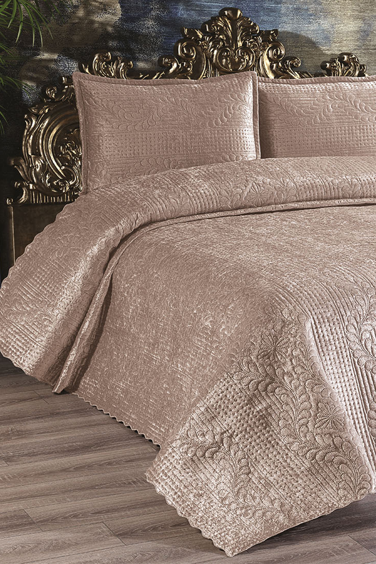 Velica Çift Kişilik Kadife Yatak Örtüsü Cappucino