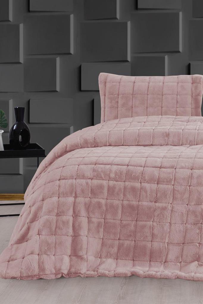 Velina Pelüş Çift Kişilik Yatak Örtüsü Pudra