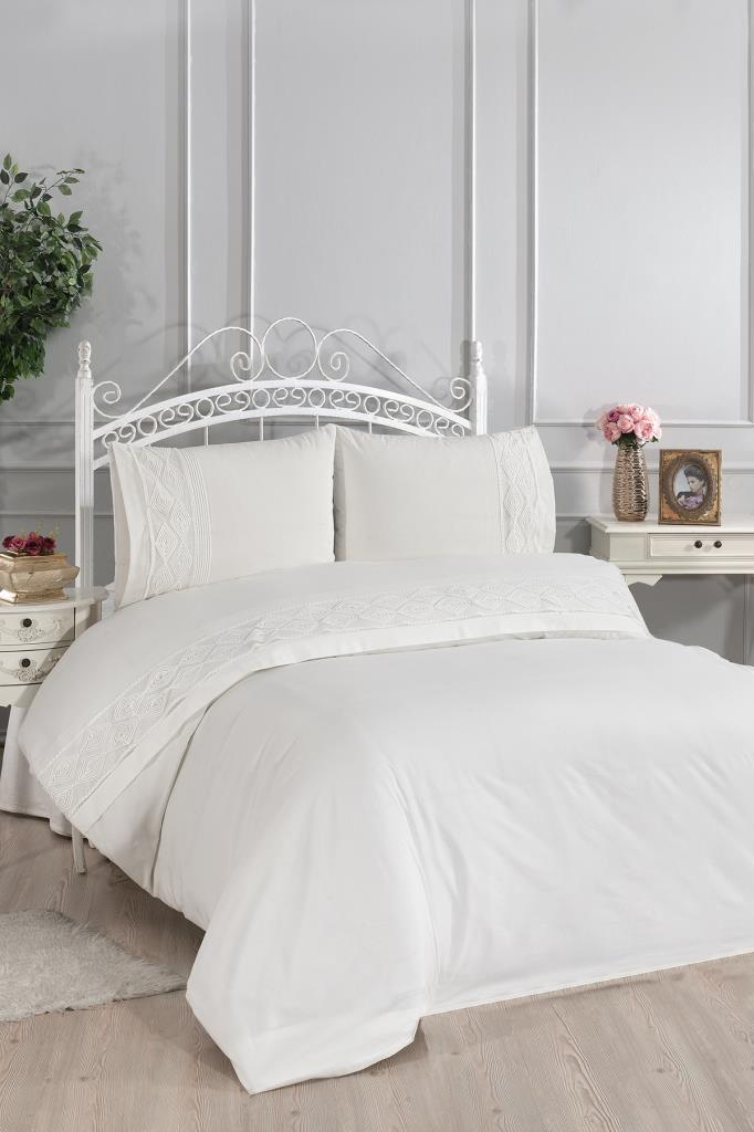 Verona Fransız Dantelli Çift Kişilik Nevresim Takımı Krem