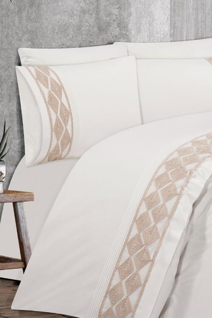 Verona Fransız Dantelli Çift Kişilik Nevresim Takımı Krem Bej