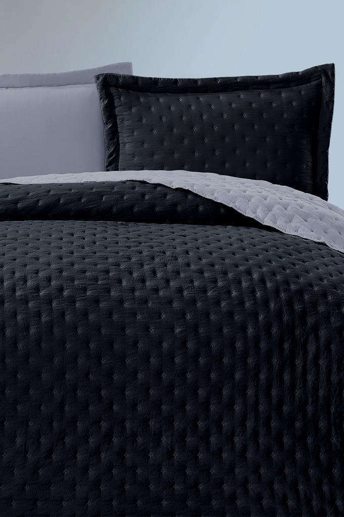 Washed Soft Çift Taraflı Çift Kişilik Yatak Örtüsü Lacivert