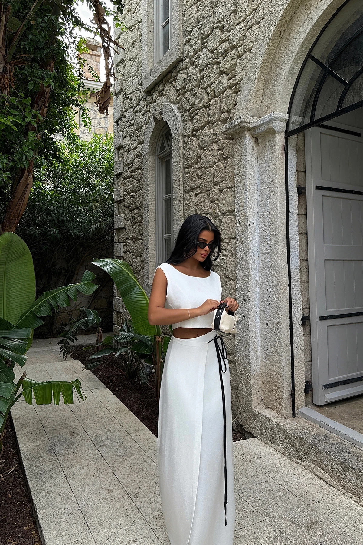 White Madora Linen Suit Size XS is used in the image. Made from Linen Fabric. Suit Top Length:37 Cm Chest:45 Cm Bottom Length:98 Cm Waist:45 Cm Model Measurements: Height: 160 Weight: 50 Chest: 80 Waist: 62 Hip: 94