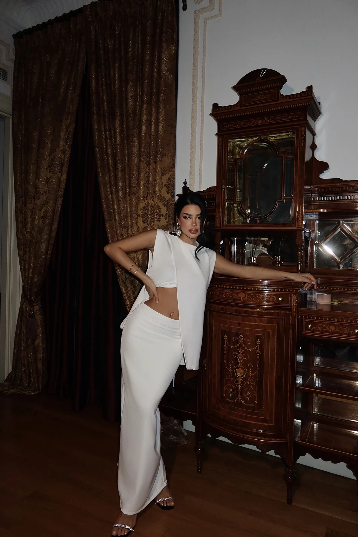White Salvatore Suit Size XS is used in the image. Top Length: 65 Cm Bust: 97 Cm Bottom Length: 89 Cm Waist: 37 Cm Model Measurements Height 158 Weight 52 Chest 80 Waist 62 Hip 93