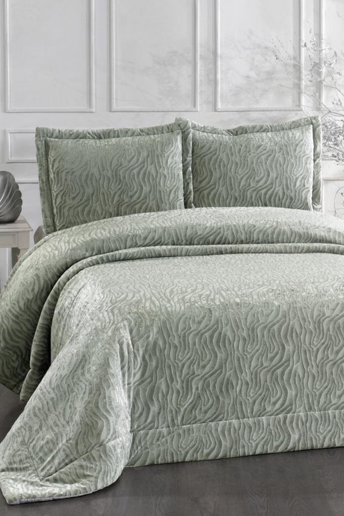 Yakut Elyaf Dolgulu Çift Kişilik 250x255 Cm Yatak Örtüsü Adaçayı