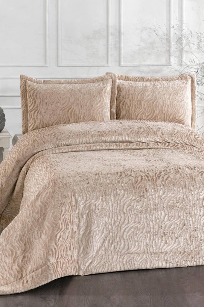 Yakut Elyaf Dolgulu Çift Kişilik 250x255 Cm Yatak Örtüsü Bej