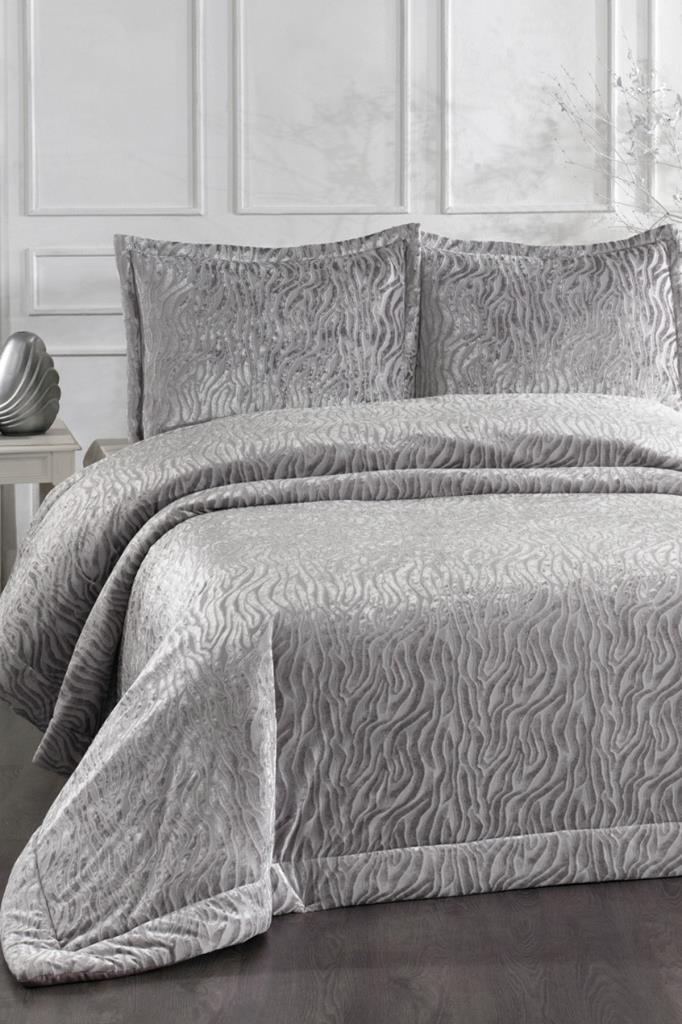 Yakut Elyaf Dolgulu Çift Kişilik 250x255 Cm Yatak Örtüsü Gri