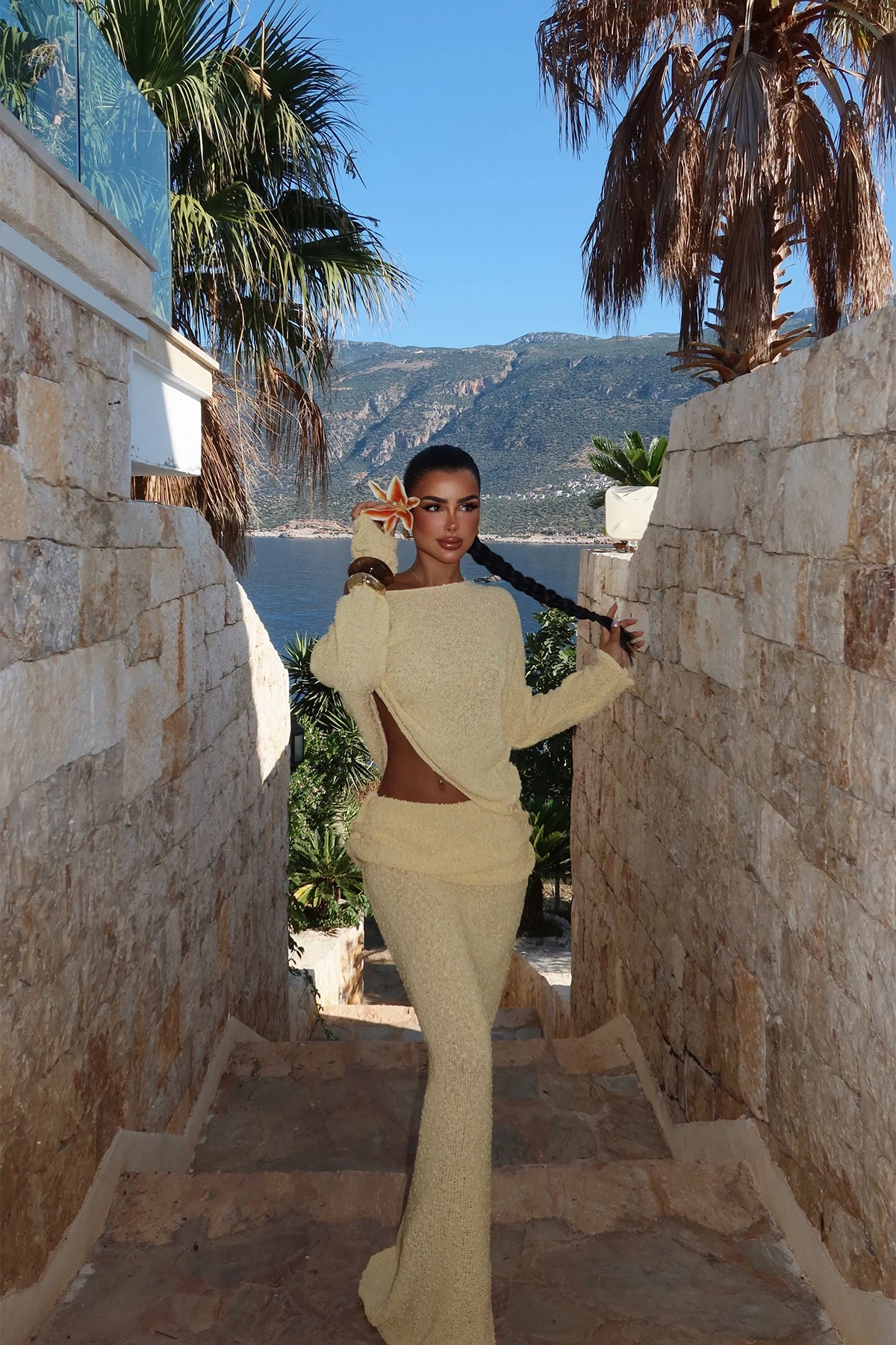 Yellow Siedre Knitwear Set Standard size is used in the image. Top Length: 50 cm Chest: 60 cm Bottom Length: 102 cm Waist: 32 cm Model Measurements Height 158 Weight 52 Chest 80 Waist 62 Hip 93